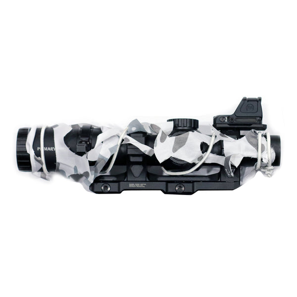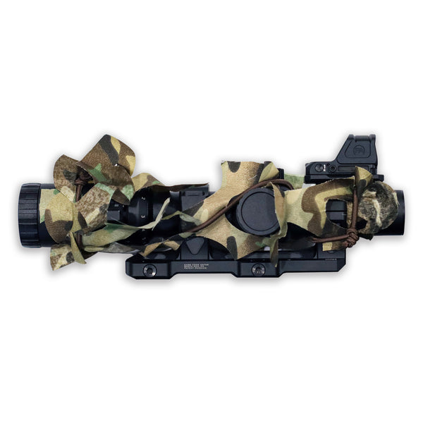Break up the shape of your scope/LPVO or change the color of it to match your surroundings using this scrim.